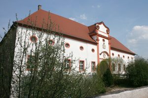 Der Vorgängerbau des Stopfenheimer Vogteischlosses war eine Wasserburg, die im frühen 18. Jahrhundert abgerissen wurde. 1716 wurde das jetzige Schloss als Vogtei des Deutschen Ordens vom Baumeister Franz Keller im barocken Stil über den Grundmauern des Vorgängerbaus erbaut. Das Schloss ist eine um einen rechteckigen Hof gebaute Vierflügelanlage mit Wassergraben. Von 1824 bis 1964 diente das Gebäude als Pfarrhaus und kam 1975 im Privatbesitz. 1994 ersteigerte der Münchner Paul Neumann das Schloss und ließ es renovieren. (nach Wikipedia)